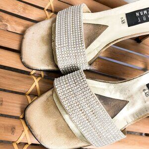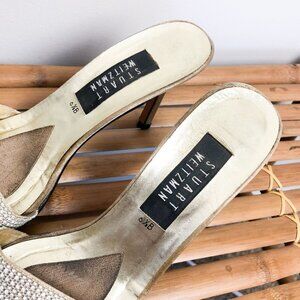 Stuart Weitzman Gold Rhinestone Slip On Heels