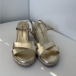 Stuart Weitzman Gold Wedge Sandals size 7.5