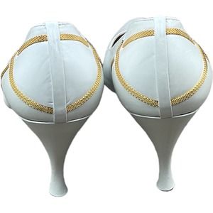Stuart Weitzman Gold and White Leather Pumps, 8W