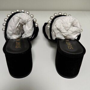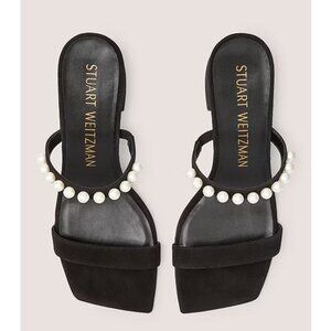 Stuart Weitzman Goldie 60 Pearl Slide Sandals 6.5 NIB Block Heel Black Suede