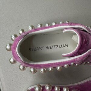 Stuart Weitzman Goldie Sneakers Pearl Embellished Cotton Candy Size 8.5 fits a 9