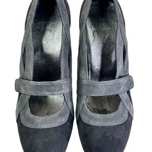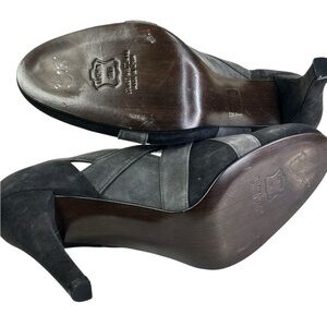 Stuart Weitzman Gray Black Mingle Suede Cutout Pumps Womens Size 9.5 heels 4.5"