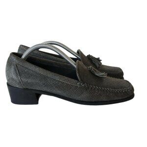Stuart Weitzman Gray Leather Square Toe Pumps 6AAA Slip-On 90s Business Casual