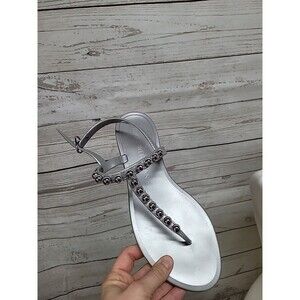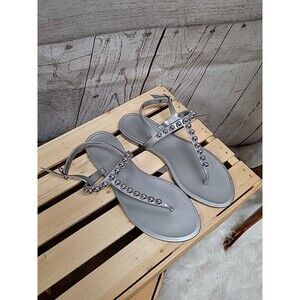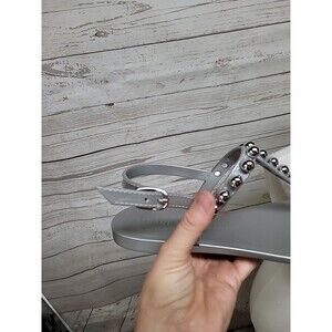 Stuart Weitzman Gray Rubber Silver Tone Studded Accent T Strap Women's Size 8