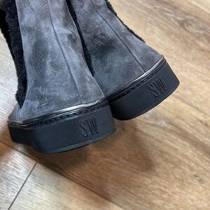 Stuart Weitzman Gray Suede High Top Sneakers with Fur Lining Size 9M