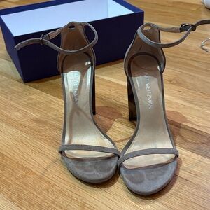 Stuart Weitzman Gray Suede and Silver Block Heels