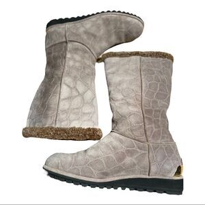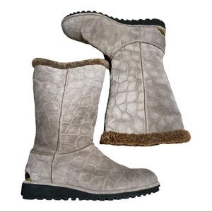 Stuart Weitzman Gray Tan Croc Embossed Winter Snow Boots Size 7 Medium
