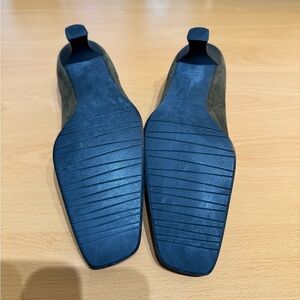 These green loafers boast a sleek slip-on design with a polished leather finish and a classic square toe. The penny loafer construction adds a touch of sophistication, while the low heel ensures comfort for everyday wear. Perfect for both professional and casual settings, these shoes offer a versatile and stylish option.