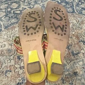 Stuart Weitzman Green and Yellow Braided Sandals size 7 1/2