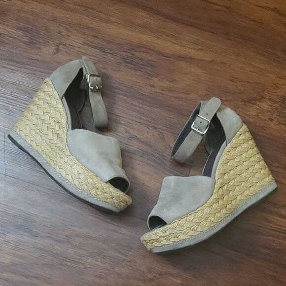 Stuart Weitzman gray Chic Feminine Summer Suede Wedge Platform Sandals Size 7