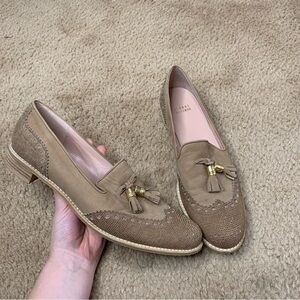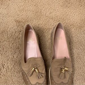 Stuart Weitzman Guything lizard print suede tassel tan loafers