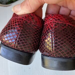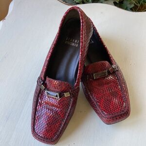 Stuart Weitzman Hazel Snakeskin Deep Red Embossed Leather Driving Loafers Sz 5