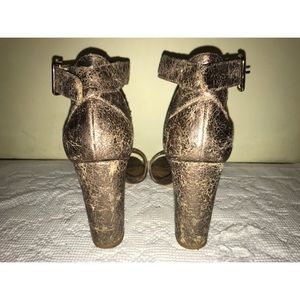 Cracked gold leather heels with ankle strap