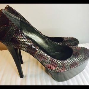 Stuart Weitzman Heels 7.5 Snake Skin Burgundy and Gray. Made in Spain and Gently Worn.