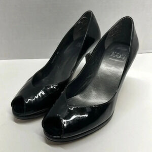 Stuart Weitzman High Heel Pumps Peep Toe Shiny Patent Leather Black