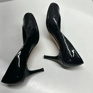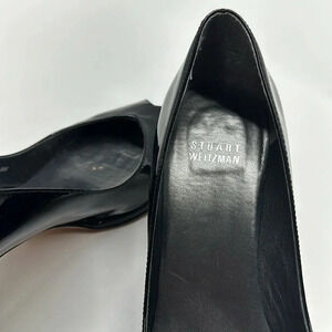 Stuart Weitzman Heels High Heel Pumps Shoe Peep Toe Shiny Patent Leather Black 8