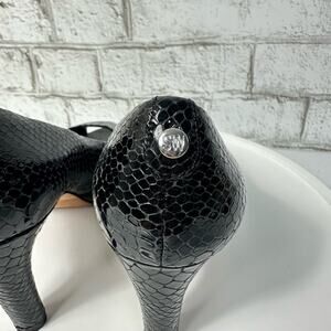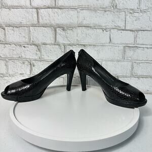 Stuart Weitzman Heels Leather Croc Snake Pattern Patent Peep Toe Pump Black 7.5