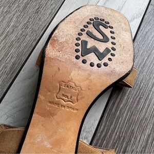 Experience the perfect blend of style and comfort with these Stuart Weitzman brown leather sandals. Crafted with a minimalist design, they feature a wide single strap for a sleek look. Made from high-quality leather, these flat sandals are ideal for any casual outing.