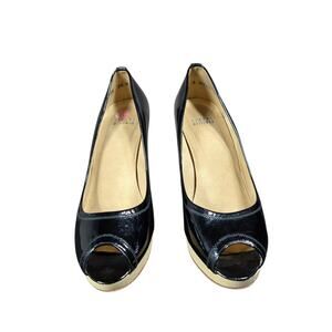 Stuart Weitzman Heels Women 9.5 Peep Toe Black Patent Leather Pumps Dress Formal