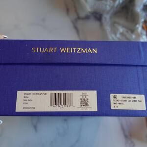 Stuart Weitzman Heels Womens 8 White Stuart 100 Strap Pump Satin Wedding Shoes