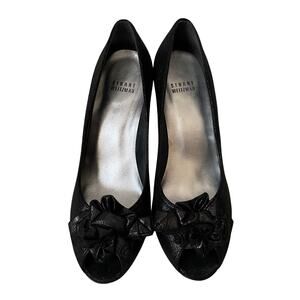 Stuart Weitzman Heels Womens Size 8 Black Metallic Floral Rosette Peep Toe Pump