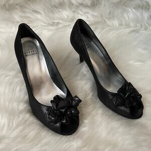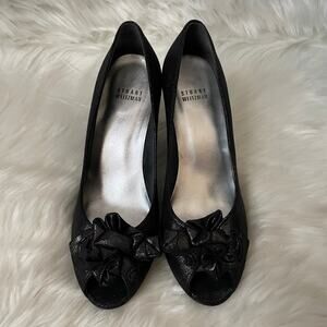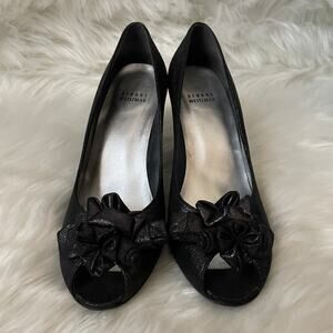 Black Floral Rosette Peep Toe Heels Stuart Weitzman Size 8