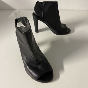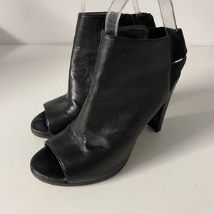 Stuart Weitzman Hereitis Open Toe Leather Boot Black Criss Cross Elastic…