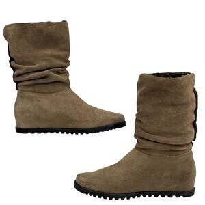 Step out in style with these Stuart Weitzman Hidden Wedge Boots! These pre-owned boots are in great condition and ready to add a touch of rugged elegance to your wardrobe. The brown suede exterior is beautifully complemented by a cozy fur lining, making them perfect for cooler weather. Don't miss out on the chance to own these fashionable and comfortable boots!