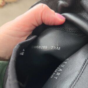 Step out in style with these classic Stuart Weitzman black knee-high boots! Featuring a subtle hidden wedge for all-day comfort, these boots pair beautifully with jeans, skirts, or dresses. A designer staple in excellent condition, perfect for both casual and dressy occasions.