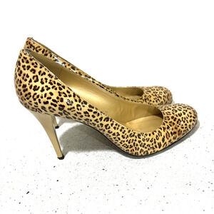 Stuart Weitzman High Heel Pumps Tan Brown Animal Print US 9M Classic Career Shoe