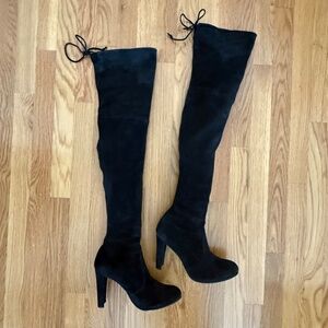 Skillfully crafted in Spain, the Highland boot is an elevated take on the iconic Lowland style. Made from stretch nappa leather with a sleek almond toe, this pull-on design features an adjustable tie-back and high block heel. Leather insole, rubber sole.