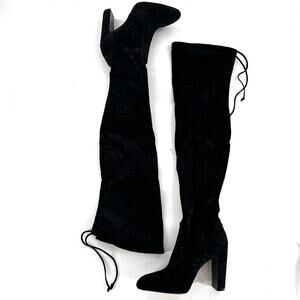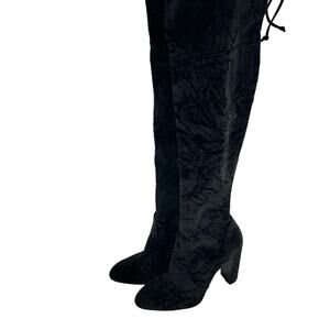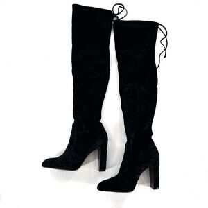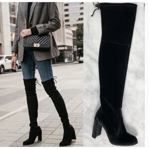 Stuart Weitzman Hiline Velvet Over the Knee Boots 9 NWOT Block Heel Black Sexy