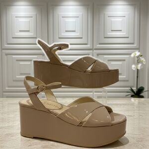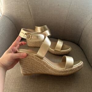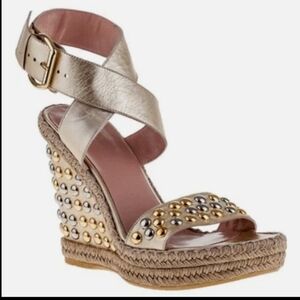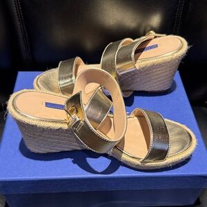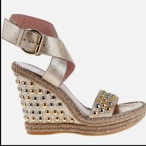 Stuart Weitzman Hubcaps Wedge Metallic Studded Espadrille Sandals 7M