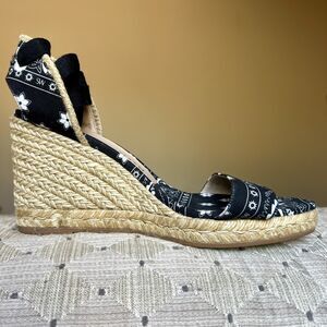 Stuart Weitzman Illeana Black Paisley Bandana Print Espadrille Sandal Women 8.5