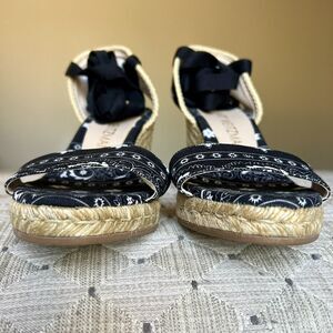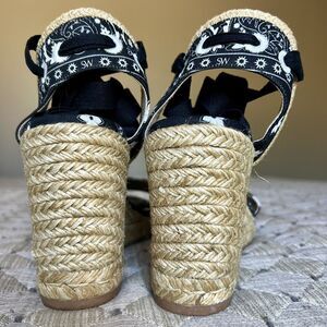 Stuart Weitzman Illeana Black Paisley Bandana Print Espadrille Sandal Women 8.5