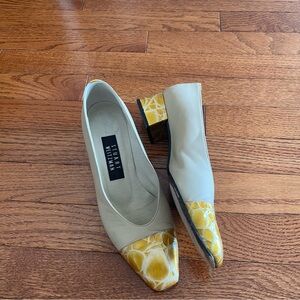 Stuart Weitzman Ivory Cream Classic Pumps Size 7.5 Cap Toe Slip Block Heels