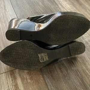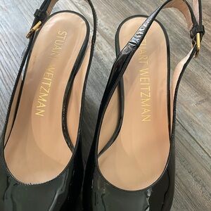 Stuart Weitzman Jean Black Patent Wedge 7.5