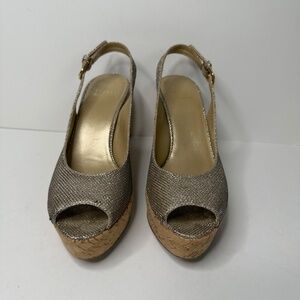 Stuart Weitzman Jean Glitter Slingback Cork Platform Sandals Women's Size 7M