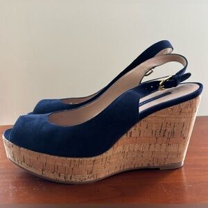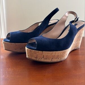 Stuart Weitzman Jean Suede Slingback Wedge Sandals size 8 1/2 Blue