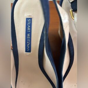 Stuart Weitzman Women's Jean Suede Slingback Wedge Sandals size 8 1/2 blue