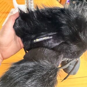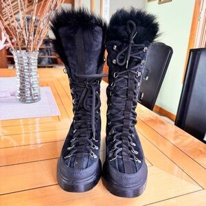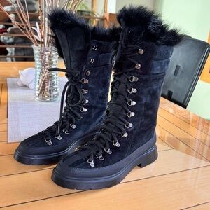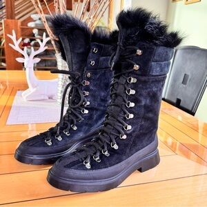 Stuart Weitzman Jessie Tall Hiker Combat Boots lace-up black suede & fur sz 8