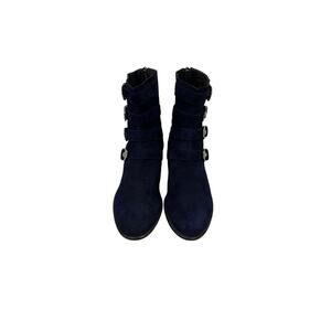 Stuart Weitzman “Jitterbug” Navy Blue Suede Leather Ankle Boots Womens 9.5 M
