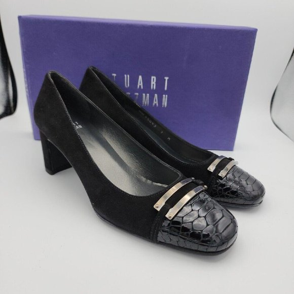 Stuart Weitzman "Joining" BlackSuede Heels w/ Snakeskin Cap Toe Pumps $475 Spain