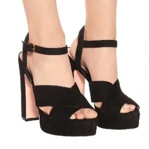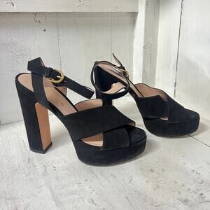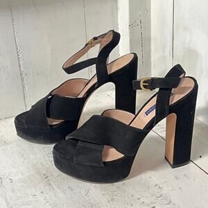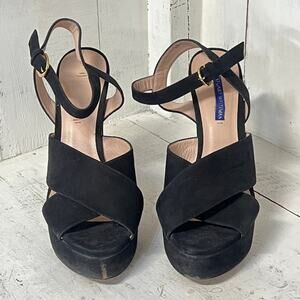 Stuart Weitzman Joni Suede Ankle Strap Platform Sandals Black Womens Size 40 / 9