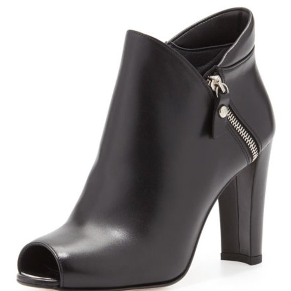 Stuart Weitzman Jump Peep-Toe Ankle Boot, Black-Size 8.5