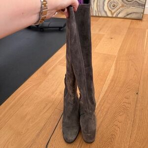 Stuart Weitzman Knee-High Suede Heeled Boots - Gray/Taupe, size 8.5