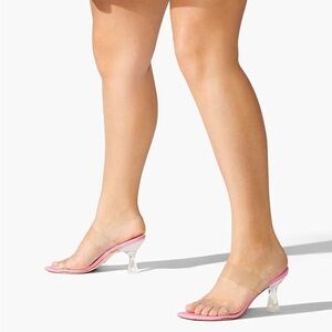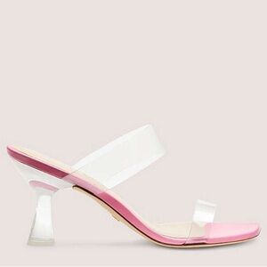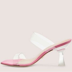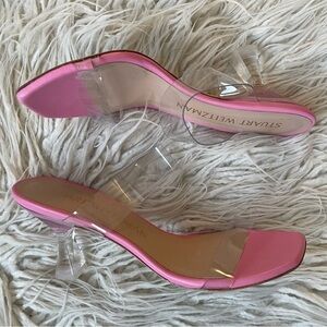 Stuart Weitzman Kristal Clear PVC Pink Leather Lucite Heel Sandal EUC Size 38.5