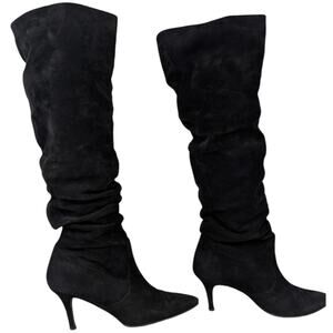 Stuart Weitzman suede boots, Stuart Weitzman over the knee boots, Stuart Weitzman black slouch boots, women’s designer boots size 7, luxury suede stiletto boots, made in Spain boots, Stuart Weitzman tall boots
