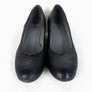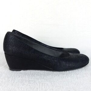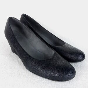Stuart Weitzman Laidback Lizette Wedge Heels Black Textured Shoes Women's 10.5N