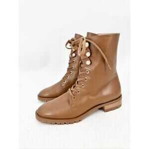 Stuart Weitzman Laine Boot Tan Combat Lace Up Pearl Button 7.5